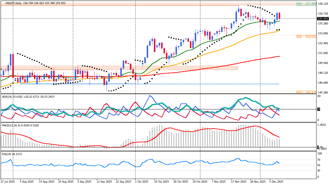 - Invalidation: The primary bearish scenario is invalidated if price breaks and holds decisively above 156.050. This would suggest that either the Fed's dovishness is already priced in, or that JPY-specific weaknesses (fiscal concerns, BoJ flexibility) are gaining traction, allowing for USD recovery.