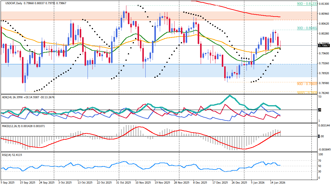The fundamental narrative for the Swiss Franc is currently dominated by the upcoming appearance of SNB Chairman Martin Schlegel at the World Economic Forum in Davos. Market participants are seeking clarity on the SNB's stance regarding inflation and interest rate differentials. Given the recent strength of the Franc, traders are alert for any verbal intervention or hints of policy adjustments aimed at curbing excessive currency appreciation. However, the Swiss National Bank's mandate to maintain price stability remains paramount, and any hawkish lean by Schlegel could further accelerate USD/CHF's decline. The technical breakdown below 0.8000 finds fundamental support from the prospect of the SNB maintaining a relatively restrictive policy compared to a Federal Reserve that may face economic headwinds from trade volatility.
