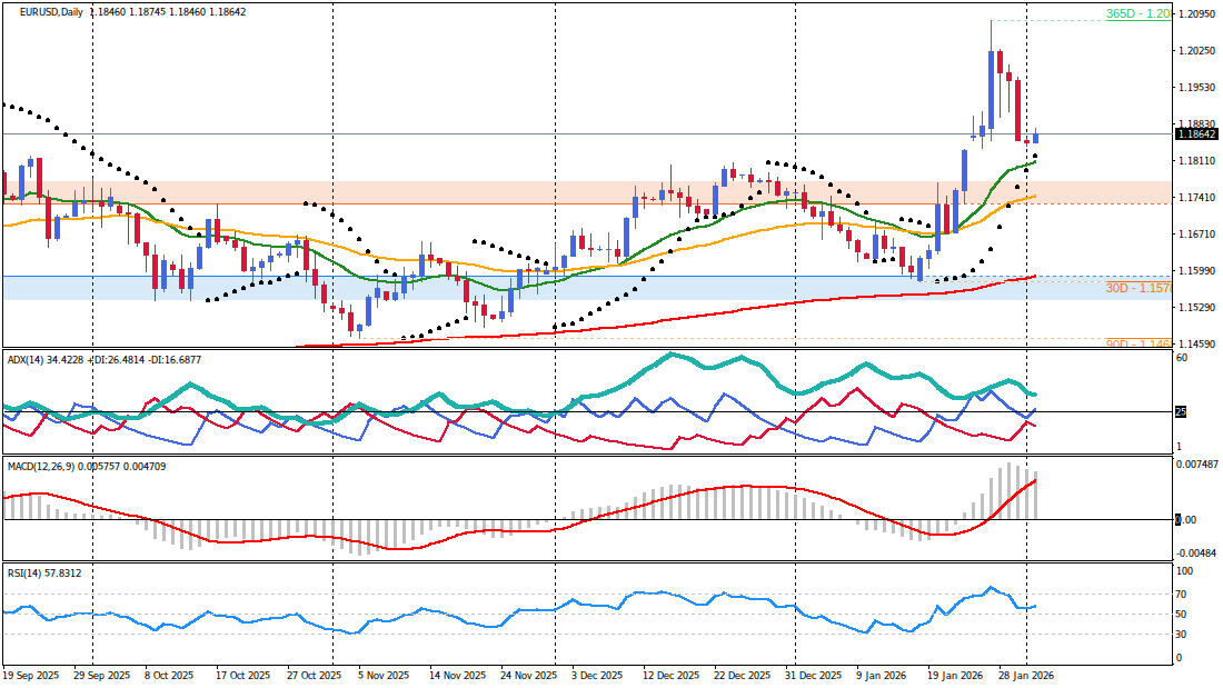 The EUR/USD is currently caught between a long-term bullish structural trend and a powerful intraday bearish correction. The fundamental catalyst of the Warsh nomination has rejuvenated the US dollar, while cooling inflation in the Eurozone provides the ECB with the justification to remain patient or even pivot toward easing. Technically, the pair is "stretched" to the downside on intraday charts, but the strength of the momentum (ADX > 50) suggests that the 1.1840 support is under severe threat. Traders should monitor the 1.1804 level closely; a daily close below this mark would signal that the multi-year bullish thesis is being fundamentally re-evaluated. Conversely, a successful defense of 1.1840 coupled with a miss in US manufacturing data could spark a sharp mean-reversion move back toward 1.1900.