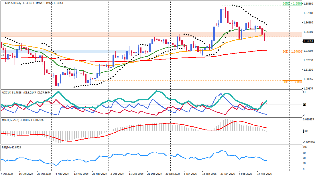 The 1.3500 level, previously a significant psychological and structural floor, has now transitioned into a formidable resistance zone. Price action aligns with the fundamental backdrop to favor a "sell the rally" approach, particularly as momentum indicators suggest the pair is in a momentum-driven decline with no evidence of a reversal base forming. Key levels include: