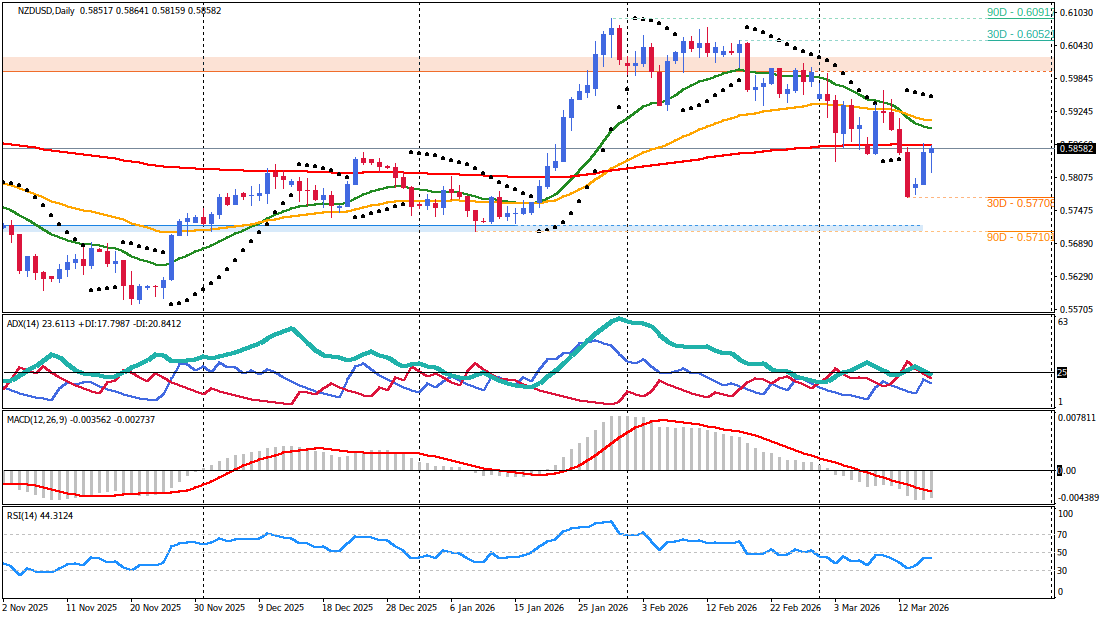 In New Zealand, the fundamental outlook is increasingly pressured. The GDT Price Index recently plummeted to 0.1% from a previous 5.7%, signaling a significant cooling in New Zealand's primary export sector. This data aligns with expectations for the Q4 GDP release, where growth is forecasted to slow to 0.4% on a quarterly basis. While the RBNZ is expected to hold rates steady at its April 8 meeting, a disappointing GDP print tomorrow could increase pressure for a more dovish policy shift later in the year. The fundamental backdrop of slowing domestic growth and falling export prices provides the "why" behind the technical resistance found at 0.5863.