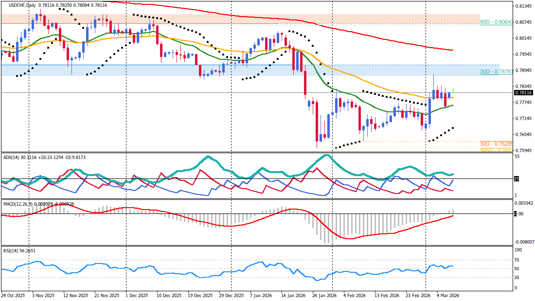 The outlook for USD/CHF remains cautiously bullish as technical indicators align with a supportive fundamental backdrop. The combination of the US Dollar's energy-related strength and the SNB's active stance against Franc appreciation creates a favorable environment for further upside. The current consolidation near 0.7800 represents a strategic accumulation phase before the anticipated volatility of the upcoming US inflation and GDP data. Traders should monitor the 0.7815 level for a confirmed breakout, while remaining vigilant of the 0.7763 support, which serves as the final line of defense for the current bullish structure. Should geopolitical tensions ease or US inflation data underperform significantly, the Franc's fundamental safe-haven status could quickly reassert itself, challenging the current technical uptrend.